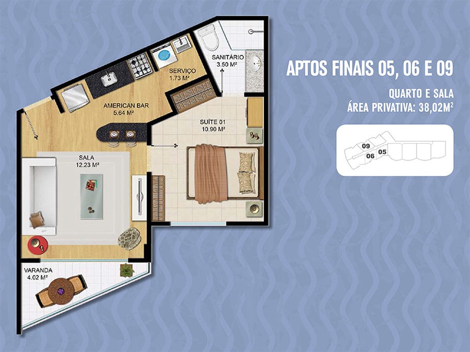 | Final 06 – Quarto e sala | 1 | 1 | 1 | 38,02m² |